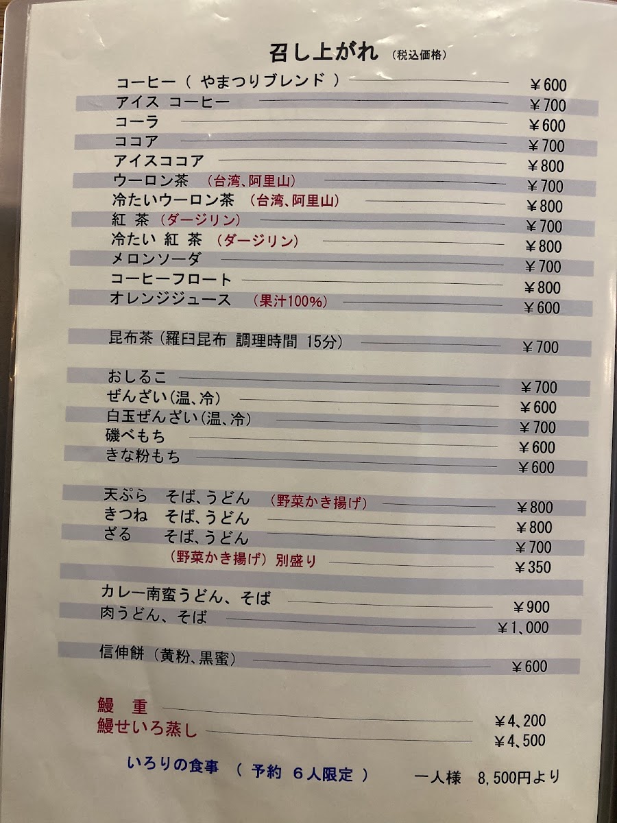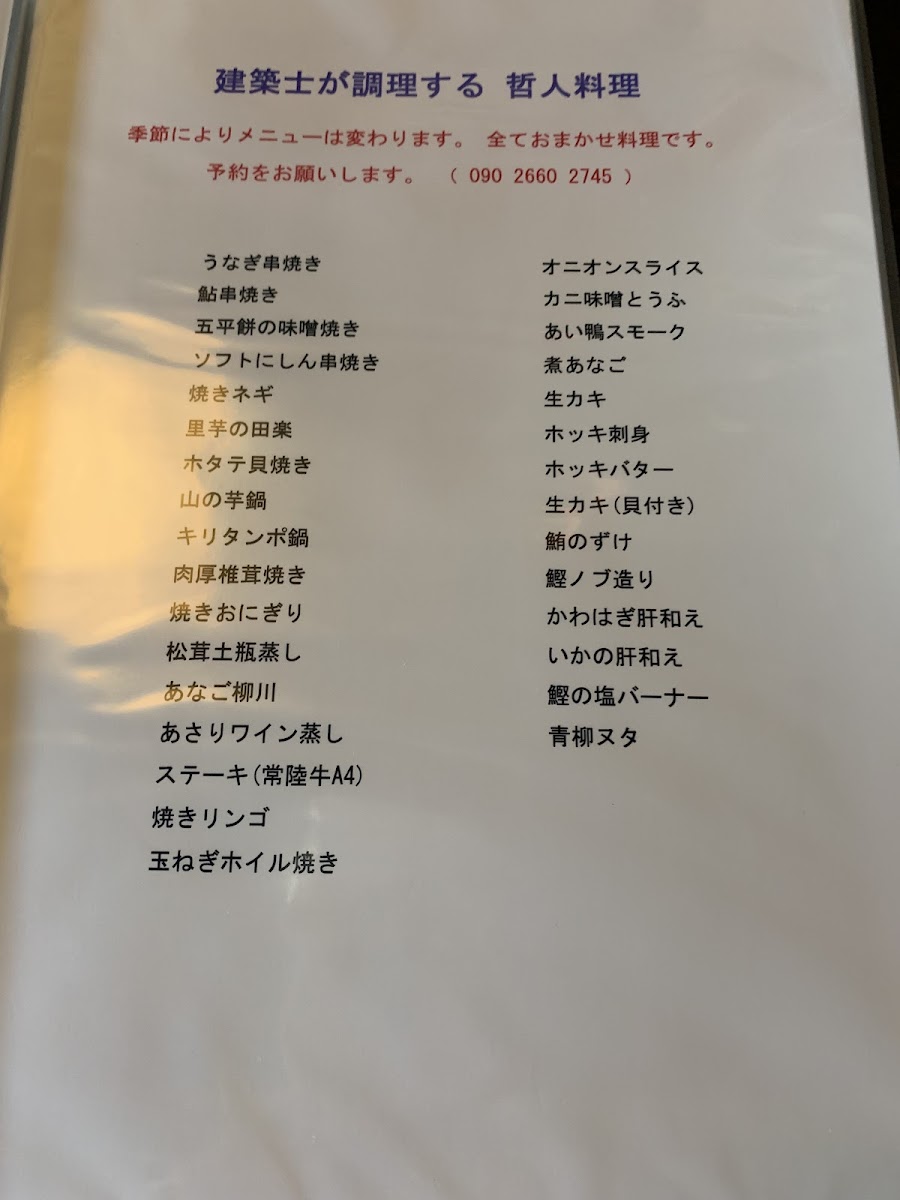 Ie no ue no Cafe Menu